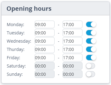 - You have the ability to set specific opening hours for your location, and you can update them as often as you need. For example, if you have different opening hours during the summer, simply access this section and input the correct ones. This information will also be displayed if someone is using our "Find a printer nearby" feature.
